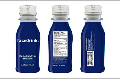 Minuman bernama ‘Facedrink’ diluncurkan dengan janji memberi Anda ‘rasa persahabatan’ dan tambahan ‘energi sosial’. Minuman 75ml ini nampaknya dirancang sedemikian rupa agar menyerupai jejaring sosial itu, bahkan terdapat kalimat ‘Add as friend’.